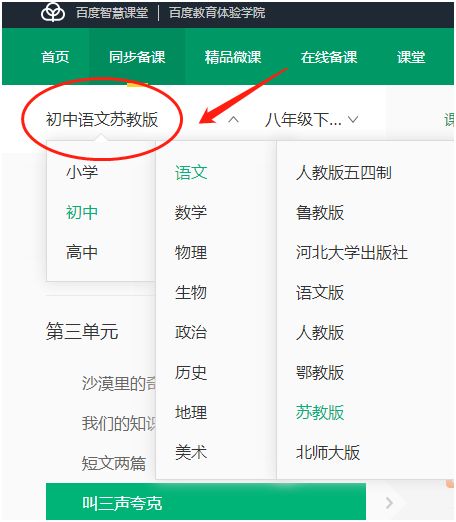 答:二級導航里直接點擊教材版本即可。