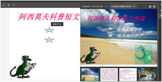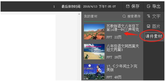 選擇課件后,進入以后就可以使用素材里的零件啦,點擊文字圖片即可。