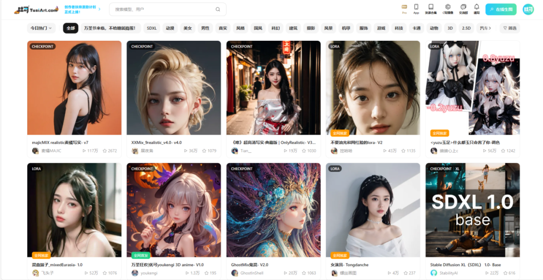 吐司上的模型均來自于國內外優質模型作者本人上傳,玩家可以在這里直接在線使用這些模型進行繪圖。