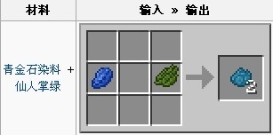 青色染料(Cyan Dye)是通過在制作臺上合成一個單位的仙人掌綠和一個單位的青金石而得的第二級染料。