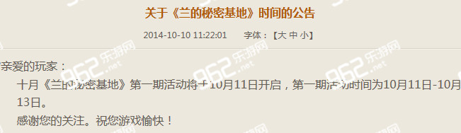 [樂游網導讀]剛剛CF官方放出了蘭的秘密基地公告,活動將于10月11日開啟,可能很多玩家今天等待了很久,不過既然官方放出了消息,那么就耐心等待明天的到來吧。