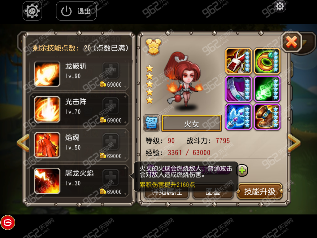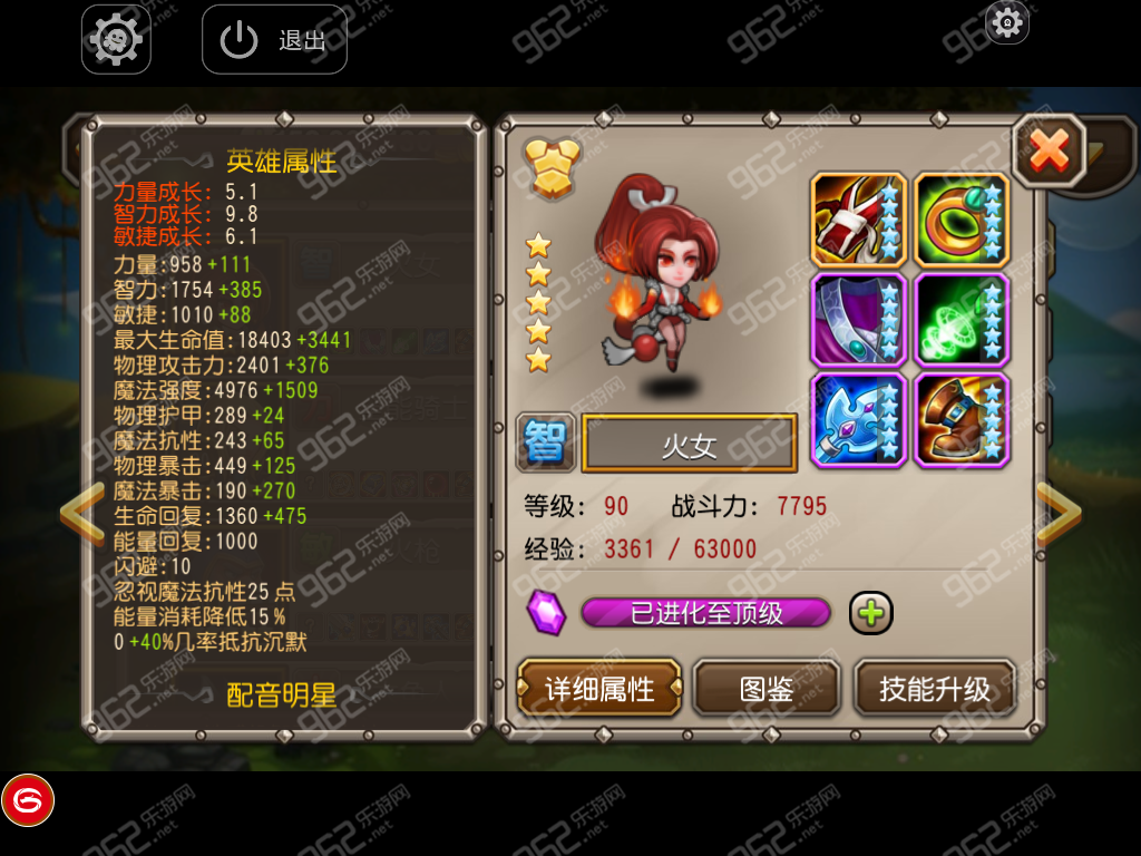 當然,對于火女這個英雄來說,我最意想不到的是她目前最好的應用價值是預言之池!針對機器人蘭博Boss,相比起其他dot英雄,火女的輸出是異常的高(每次普通攻擊都能造成大量傷害啊),自身更附帶了一個控制技能光擊陣,在打該副本真是輕松的不要不要!今天租了公會土豪的火女打難度6,全員基本滿血,還剩20s就把Boss推倒,真是異常輕松!