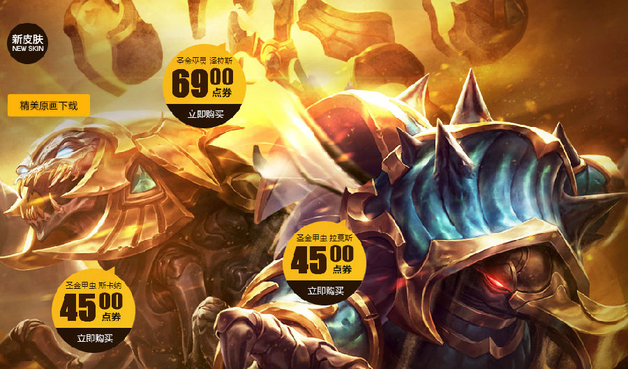 在之前LOL官網為我們爆料了龍龜、澤拉斯、蝎子這三個英雄的圣金系列皮膚,這次國服真是上架了這三款皮膚,下面就是小編為大家帶來的這三個心英雄皮膚的價格和購買地址介紹!