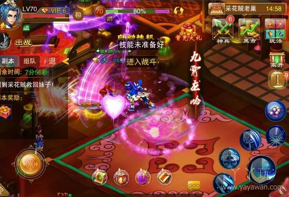 1.魅惑:“采陰補陽什么的,呵呵呵呵,最喜歡了。”當boss說這句話的時候,會給自己釋放一個吸收傷害的光盾,同時對距離自己最遠的玩家定身,并造成持續傷害,回復自己的氣血。(記得把光盾打破!!)
