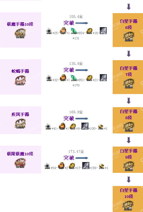 劍靈傳說手鐲成長樹(1段--10段)所需材料匯總